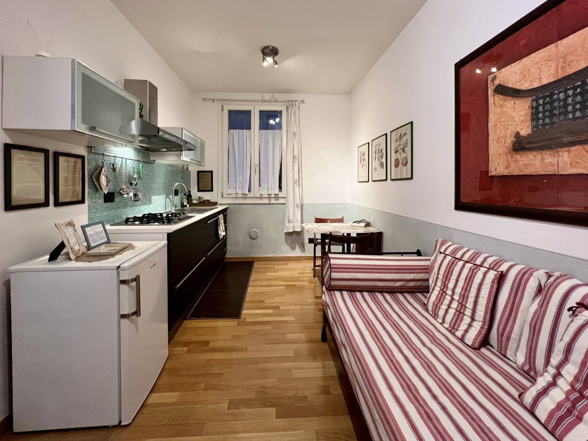 L’ appartamento è composto da una camera matrimoniale/doppia, un soggiorno con angolo cottura, divano letto per una persona e un bagno. L’appartamento è stato oggetto di recentissima ristrutturazione ed è dotato di ogni confort: asciugacapelli, asciugamani, lenzuola e wifi gratuito.